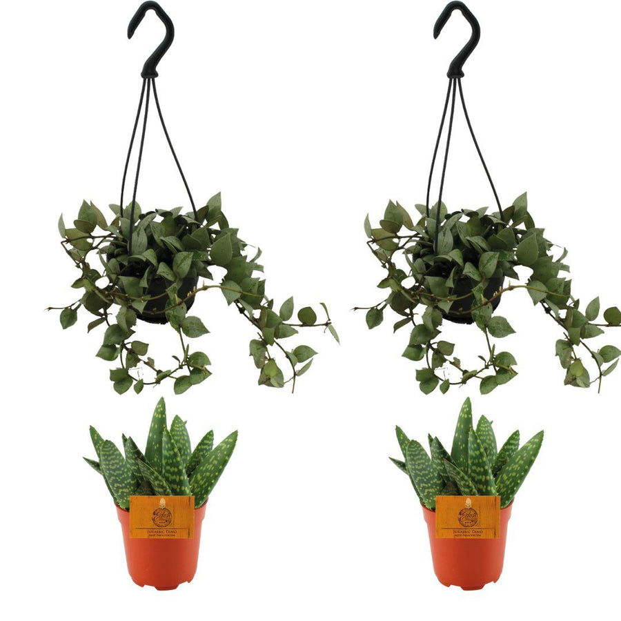 2x Aloe Paradisicum + 2x Hoya Krohniana Eskimo Super Silver - 4 stuks - Ø10.5cm - ↕10cm