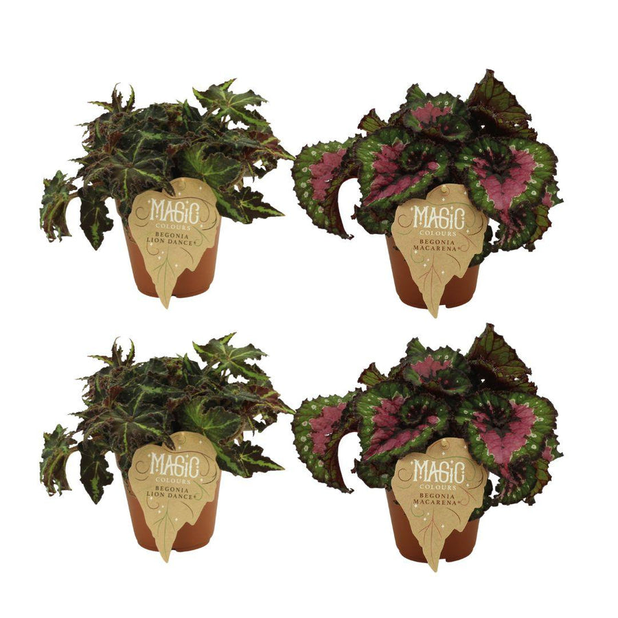 2x Begonia Rex Lion Dance + 2x Begonia Rex Macarena - 4 stuks - Ø12cm - ↕25cm