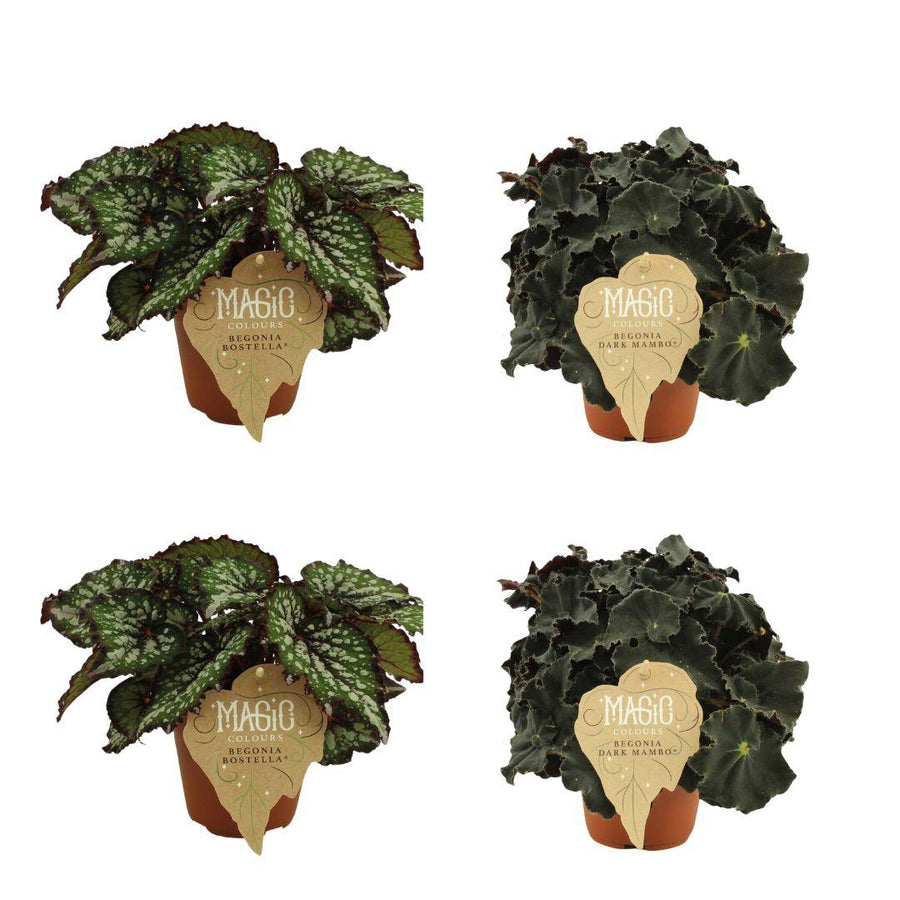 2x Begonia Rex Bostella + 2x Begonia Rex Dark Mambo - 4 stuks - Ø12cm - ↕25cm