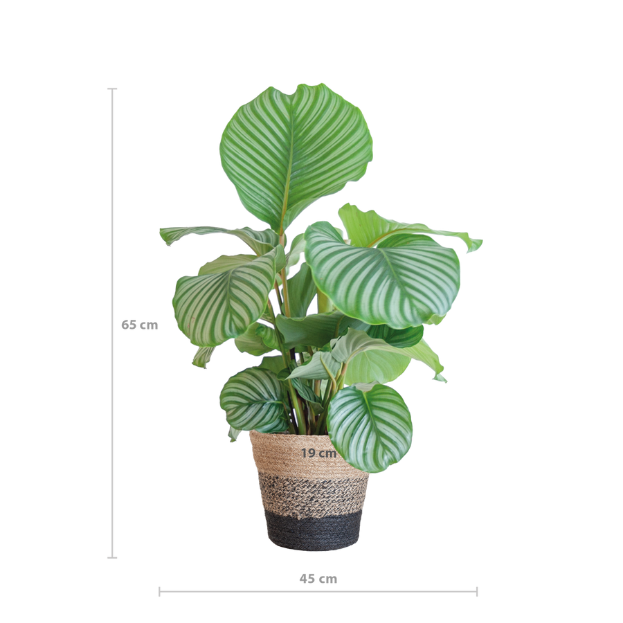 Calathea Orbifolia met Lissabon mand zwart - 65cm - Ø21