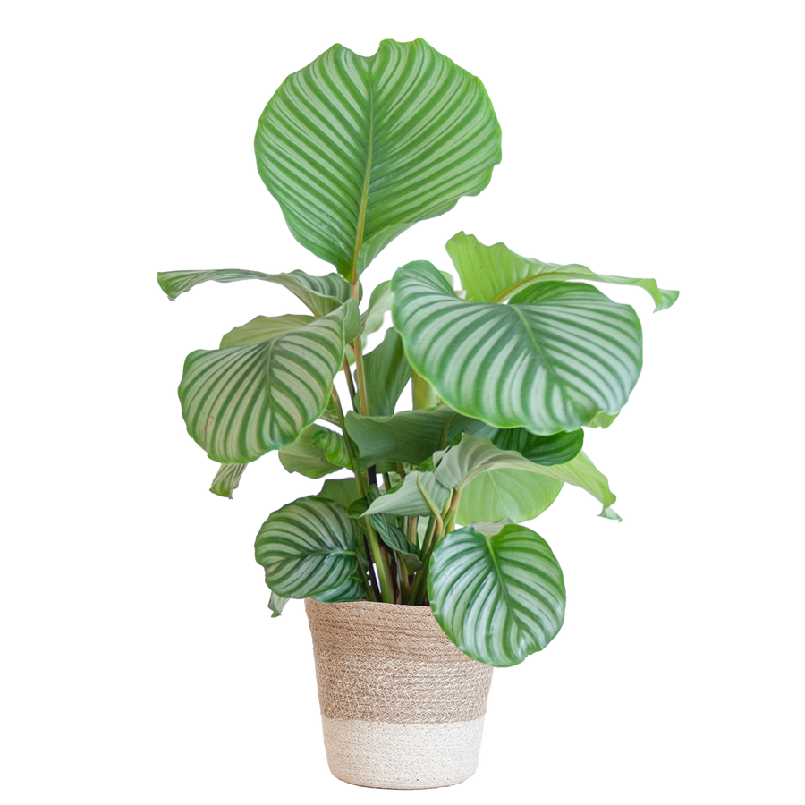 Calathea Orbifolia met Lissabon mand wit - 65cm - Ø19