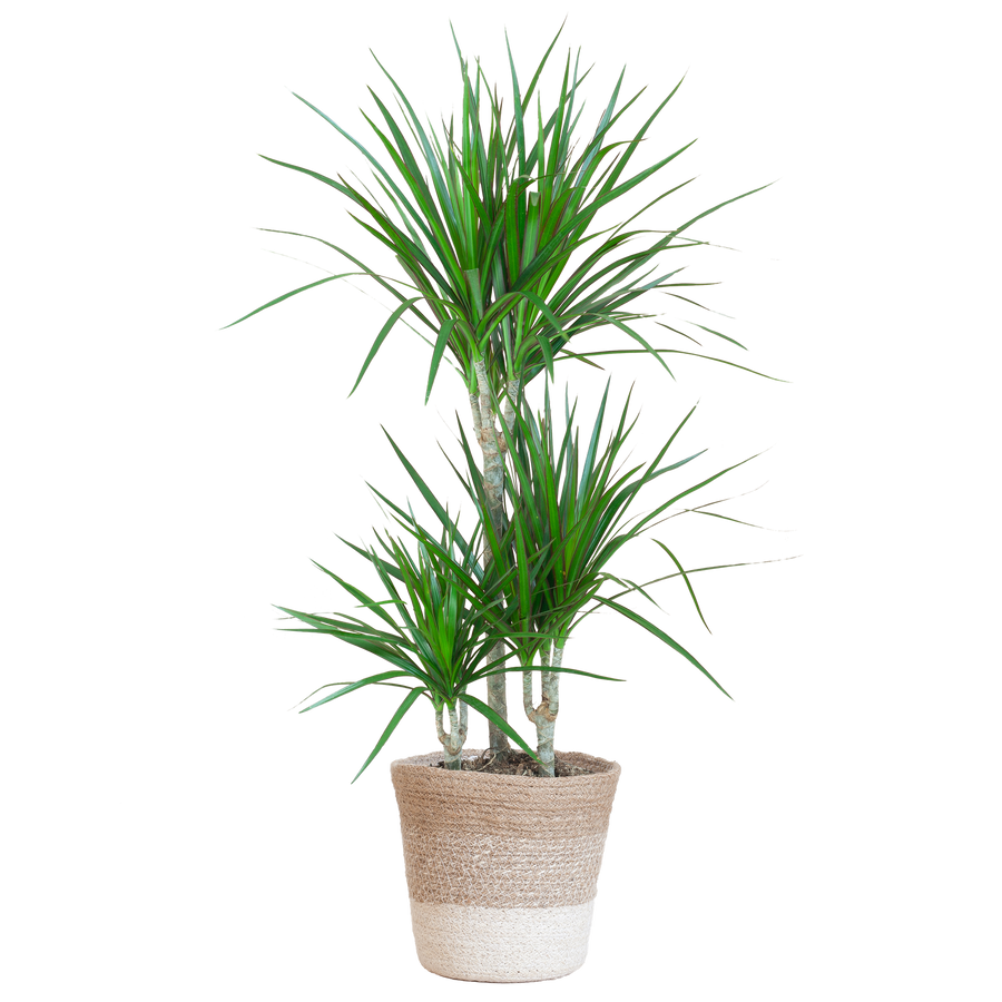 Dracaena Marginata met Lissabon mand wit - 95cm - Ø21