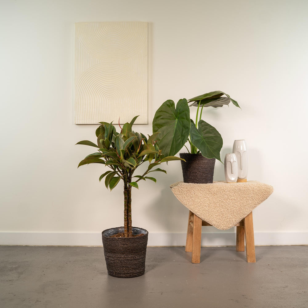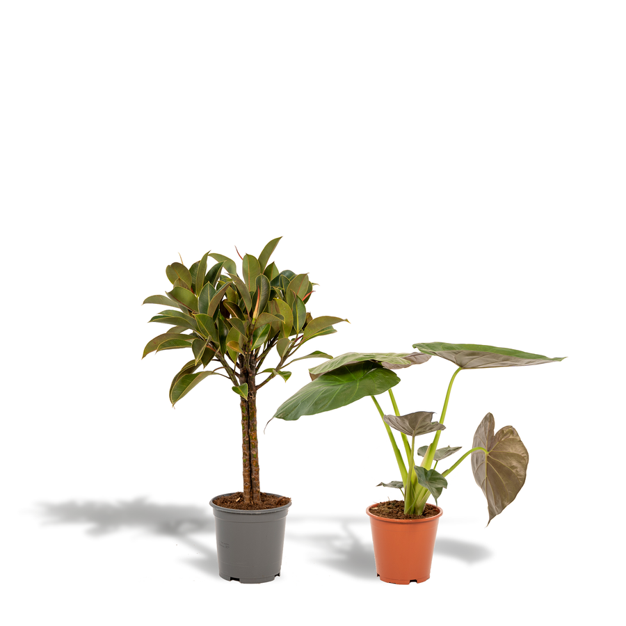 Ficus Elastica Melany - Ø21cm - ↕85cm + Alocasia Wentii - Ø19cm - ↕60cm