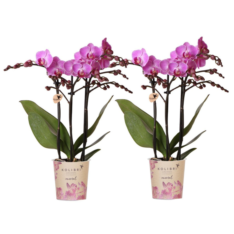 Kolibri Orchids | COMBI DEAL van 2 Roze phalaenopsis orchideeën - Andorra - potmaat Ø9cm | bloeiende kamerplant - vers van de kweker