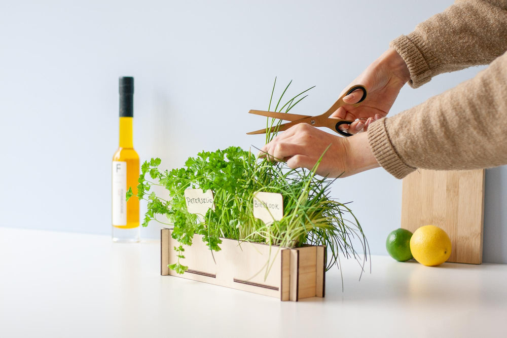 Kruidenpost - Peterseliezaadjes en bieslookzaadjes, incl. houten kweekbakje