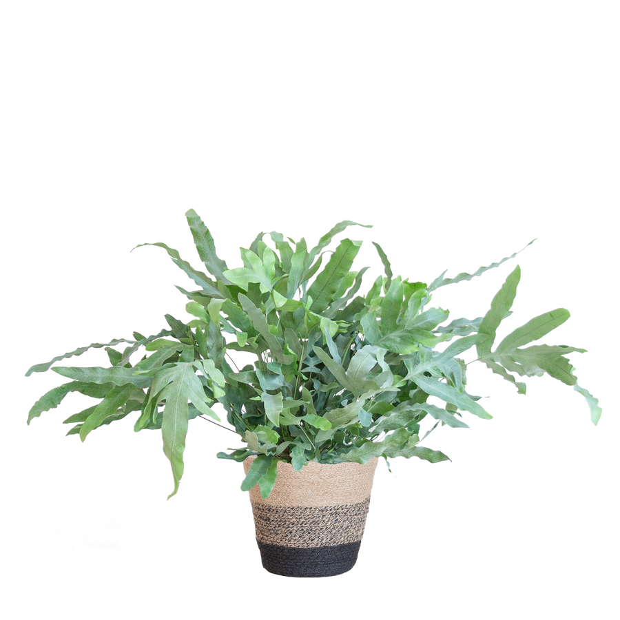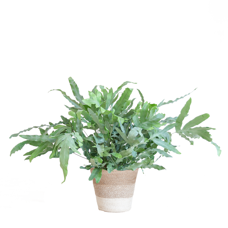 Phlebodium Aureum 'Blue Star' met Mand Sofia naturel - 40cm - Ø17
