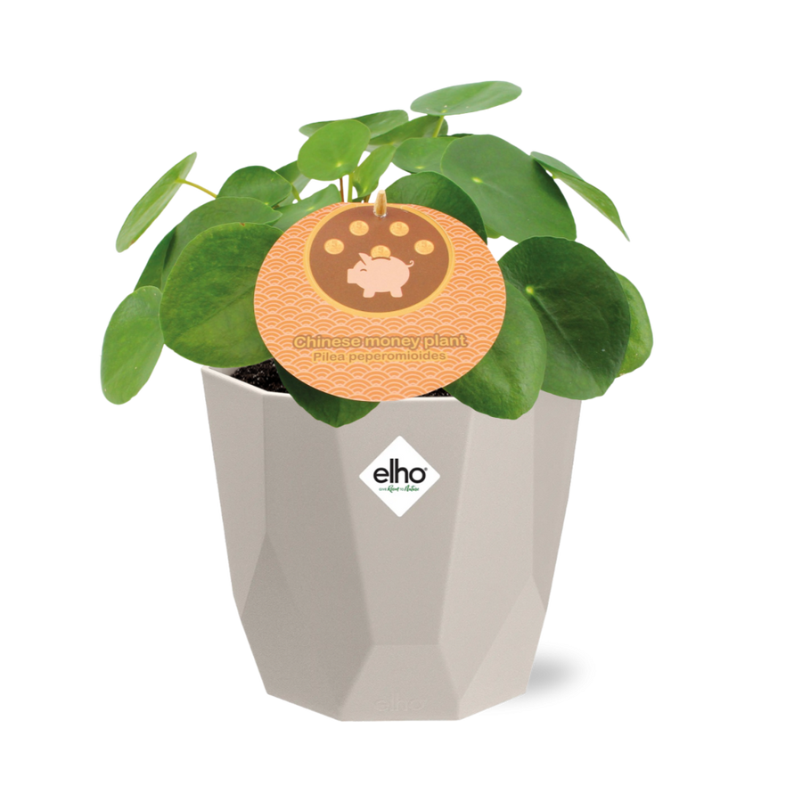 Pilea Peperomioides 12cm in ELHO b.for rock 14 cm warm grey