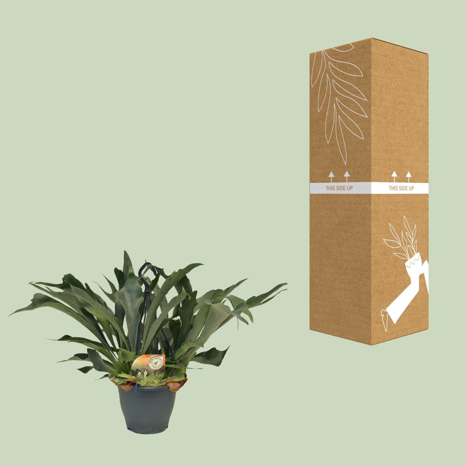 Staghorn varens zijn populaire kamerplanten die bekend staan om hun unieke gewei-achtige bladeren. Deze varens, wetenschappelijk bekend als Platycerium, zijn inheems in tropische regio's zoals Zuidoost-Azië, Australië en Afrika. Deze planten zijn epifyten, wat betekent dat ze groeien op bomen of rotsen in plaats van in de grond. Dit maakt ze perfect geschikt voor binnenomgevingen, omdat ze kunnen worden gemonteerd op een bord of opgehangen in manden zonder dat ze aarde nodig hebben. Staghorn varens gedijen in helder, indirect licht en hebben hoge luchtvochtigheid nodig om hun natuurlijke regenwoudhabitat na te bootsen. Met de juiste verzorging kunnen deze varens een prachtige toevoeging zijn aan elke binnenruimte en een vleugje tropische schoonheid toevoegen. In het wild geven Platycerium varens de voorkeur aan gebieden met veel vochtigheid en veel regenval. Hun natuurlijke habitat omvat gebieden met weelderige vegetatie, zoals regenwouden en tropische bossen. Deze gebieden bieden de perfecte omstandigheden voor de varens om te groeien en te gedijen. Ze kunnen vaak worden gevonden in de ondergroei van het bos, waar ze zich vasthechten aan bomen of rotsen. Deze varens hebben zich aangepast om voedingsstoffen en water uit de lucht, regen en vergaand materiaal om hen heen op te nemen. Hoewel ze oorspronkelijk uit tropische regio's komen, kunnen Staghorn varens met succes binnenshuis worden gekweekt in een breed scala aan klimaten, waardoor een stukje jungle in huis wordt gehaald. Platycerium, ook bekend als Varenhoorn, gedijt op een halfschaduwrijke plek en heeft om de 8-10 dagen water nodig. Deze unieke plant geeft de voorkeur aan goed doorlatende grond, zoals een mengsel van veenmos, orchideeënschors en perliet. Wat betreft bemesting is het het beste om de Varenhoorn eens in de drie tot vier weken tijdens het groeiseizoen, dat meestal in de lente en de zomer valt, met verdunde vloeibare meststof te voeden. Vermijd bemesting tijdens de rustperiode in de herfst en winter. Dit verzorgingsregime zal helpen om een gezonde en bloeiende Varenhoorn te garanderen. Staghorn varens zijn populaire kamerplanten omdat ze een unieke touch toevoegen aan elke ruimte. Hun kenmerkende bladeren lijken op het gewei van een hert, vandaar de naam, en ze kunnen op muren worden gemonteerd voor een opvallende presentatie. Bovendien gedijen ze goed in omstandigheden met weinig licht, waardoor ze perfect zijn om een vleugje groen toe te voegen aan binnenruimtes met beperkt zonlicht. Deze Geweischede zal geleverd worden in een grootte van 20 cm. De huidige hoogte van deze Geweischede is ongeveer 50 cm. Deze plant gedijt goed op een plek met halfschaduw. Het verzorgen van de Geweischede is ontzettend eenvoudig. Het unieke bladvormige uiterlijk voegt een vleugje elegantie toe aan elke ruimte.