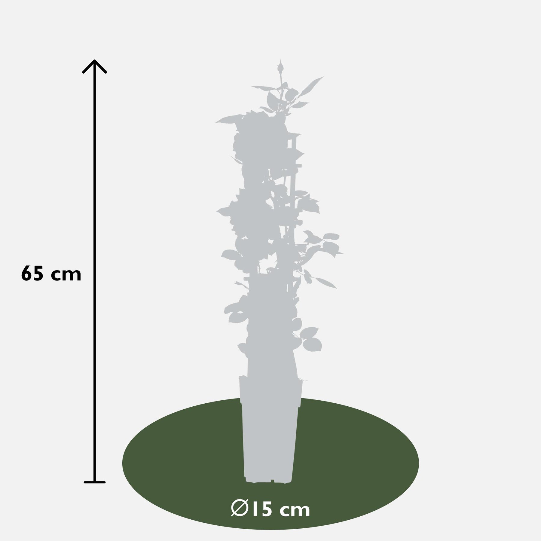 ‘Rosa Crazy in love Vanilla’ is een populaire crèmewitte klimroos met frisgroene glimmende bladeren. Rozen behoren al honderden jaren tot een van de bekendste en meest aangeplante groep planten. De roos heeft in verschillende culturen een symbolische waarde. Al in de oudheid werden er tempels en paleizen mee versierd. De roos begint te bloeien in juni en bloeit door tot aan de eerste vorst in oktober of november. Om het bloeien te stimuleren is het raadzaam om oude en uitgebloeide bloemen te verwijderen. De klimroos houdt van een zonnige standplaats, en voor de mooiste groei kun je hem het beste om het jaar tot zo'n 30 centimeter boven de grond terug snoeien.
