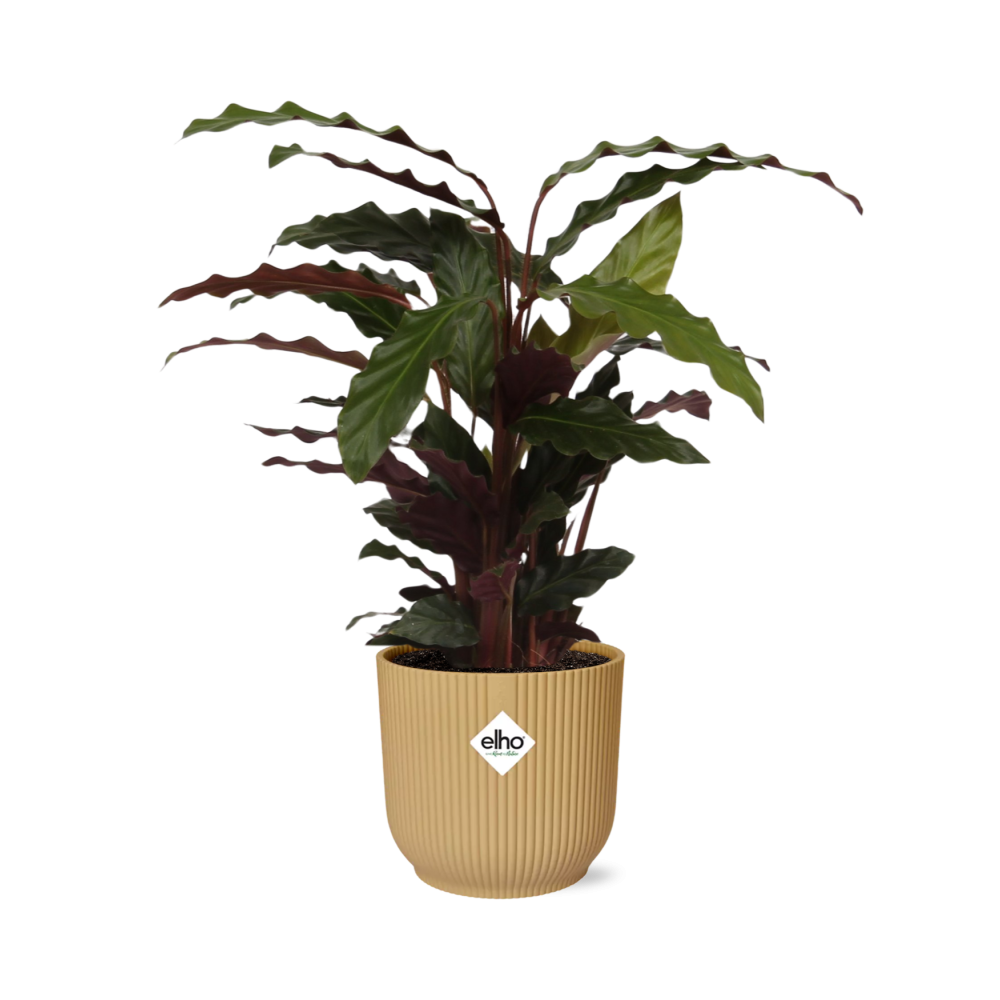 Calathea is een prachtige plant die gedijt op een plek met halfschaduw of schaduw. Het geeft de voorkeur aan vochtige grond, dus regelmatig water geven is nodig om het gezond te houden. Bij het planten van Calathea, zorg ervoor dat je een goed doorlatende grond kiest die rijk is aan organisch materiaal. Wat betreft meststof, wordt het aanbevolen om de plant elke 2-3 maanden tijdens het groeiseizoen te voeden met een gebalanceerde, in water oplosbare meststof. Vergeet niet om eventuele dode of vergeelde bladeren te verwijderen om nieuwe groei te stimuleren. Met de juiste verzorging zal jouw Calathea gedijen en een prachtige toevoeging zijn aan jouw decoratieve pot.
