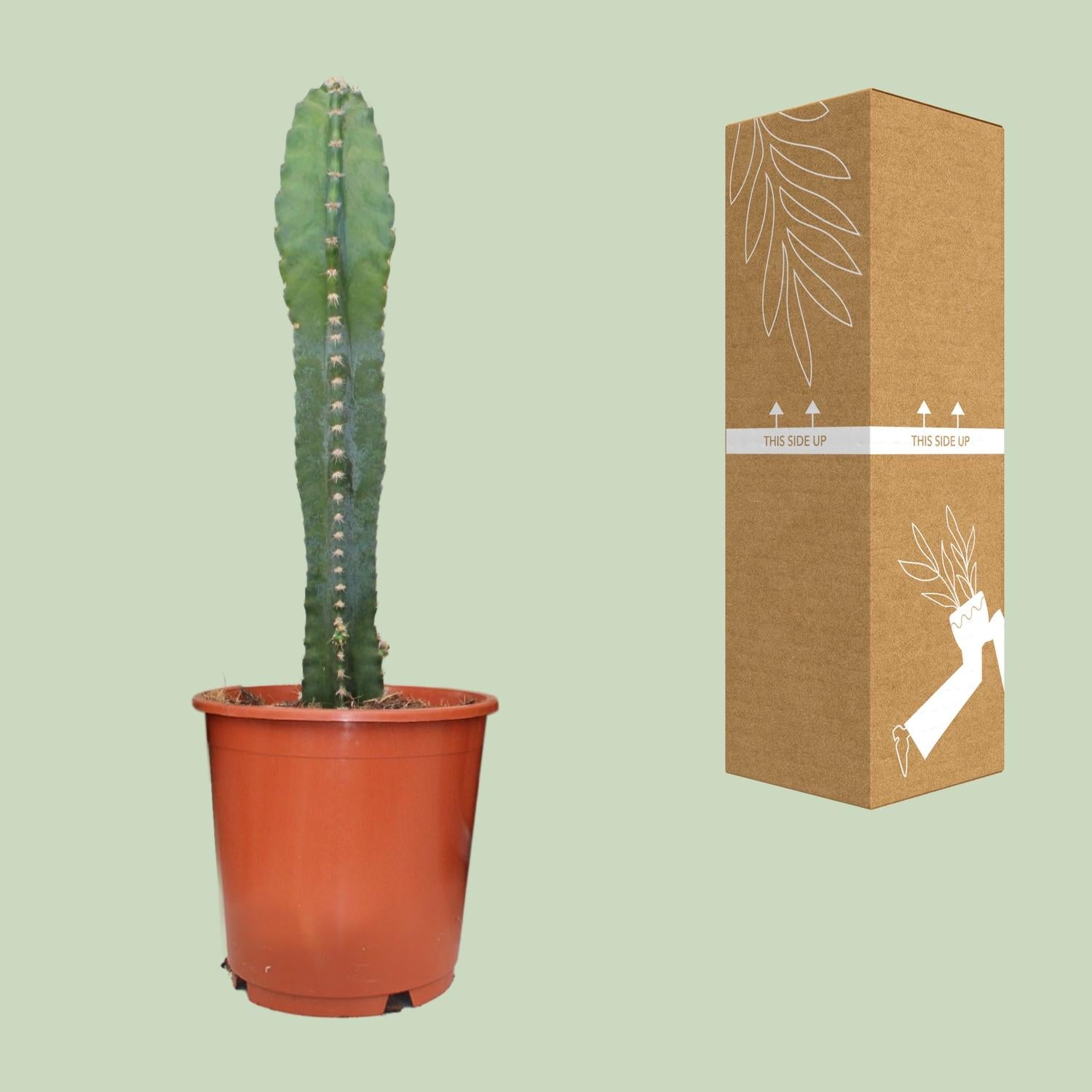 De Cereus peruvianus, ook bekend als Cactus, is een prachtige kamerplant afkomstig uit Zuid-Amerika. Met zijn unieke vorm en levendige groene kleur voegt het een vleugje schoonheid toe aan elke kamer. Deze onderhoudsarme plant heeft minimaal verzorging nodig, waardoor het perfect is voor drukke mensen. Zijn vermogen om binnen te gedijen maakt het een ideale keuze voor mensen met beperkte buitenruimte. Breng een vleugje exotische charme in huis met de Cereus peruvianus Florida, een opvallende binnen cactus die zeker jouw leefruimte zal opvrolijken. Maak kennis met de prachtige Cereus Peruvianus - een betoverende toevoeging aan elke botanische collectie. Deze verbluffende cactus gedijt in gedeeltelijke schaduw tot volle zon en laat zijn opvallende kenmerken zien. Om een optimale groei te garanderen, moet deze schoonheid eens in de 8-10 dagen water krijgen om een perfecte balans voor zijn welzijn te behouden. Met zijn kenmerken is deze Cereus Peruvianus een must-have voor plantenliefhebbers die op zoek zijn naar een moeiteloos fascinerende toevoeging aan hun binnen- of buitenruimtes. Verken de wonderen van de natuur met deze onderhoudsvriendelijke, maar visueel boeiende vetplant.Cereus peruvianus, ook bekend als de Peruaanse appelcactus, is een visueel opvallende vetplant die een vleugje woestijnmagie brengt in elke ruimte. Zijn unieke kolomvormige stelen, versierd met betoverende nachtbloeiende bloemen, maken het een fascinerende toevoeging aan uw binnen- of buiten tuin. Interessant genoeg is deze heerlijke plant niet alleen een lust voor het oog het biedt ook een leuke wetenswaardigheid over zijn oneetbaarheid! Hoewel het op fruit kan lijken, is het belangrijk om te weten dat Cereus peruvianus uitsluitend bedoeld is voor decoratieve doeleinden, dus weersta de verleiding om een hap te nemen!- Cereus peruvianus is een cactusplant die algemeen bekend staat als Cereus.- Deze specifieke variëteit van Cereus heeft een potmaat van 17 cm, waardoor het geschikt is voor kleine ruimtes of binnentuinieren.- De plant bereikt meestal een hoogte van ongeveer 55 cm, waardoor het een compacte en beheersbare keuze is voor plantenliefhebbers.- Cereus peruvianus geeft de voorkeur aan een plek in gedeeltelijk beschaduwde of zonnige gebieden.- Leuk feitje: Cereus peruvianus staat bekend om zijn adembenemende bloei 's nachts, die meestal 's nachts opent en een delicate geur heeft.
