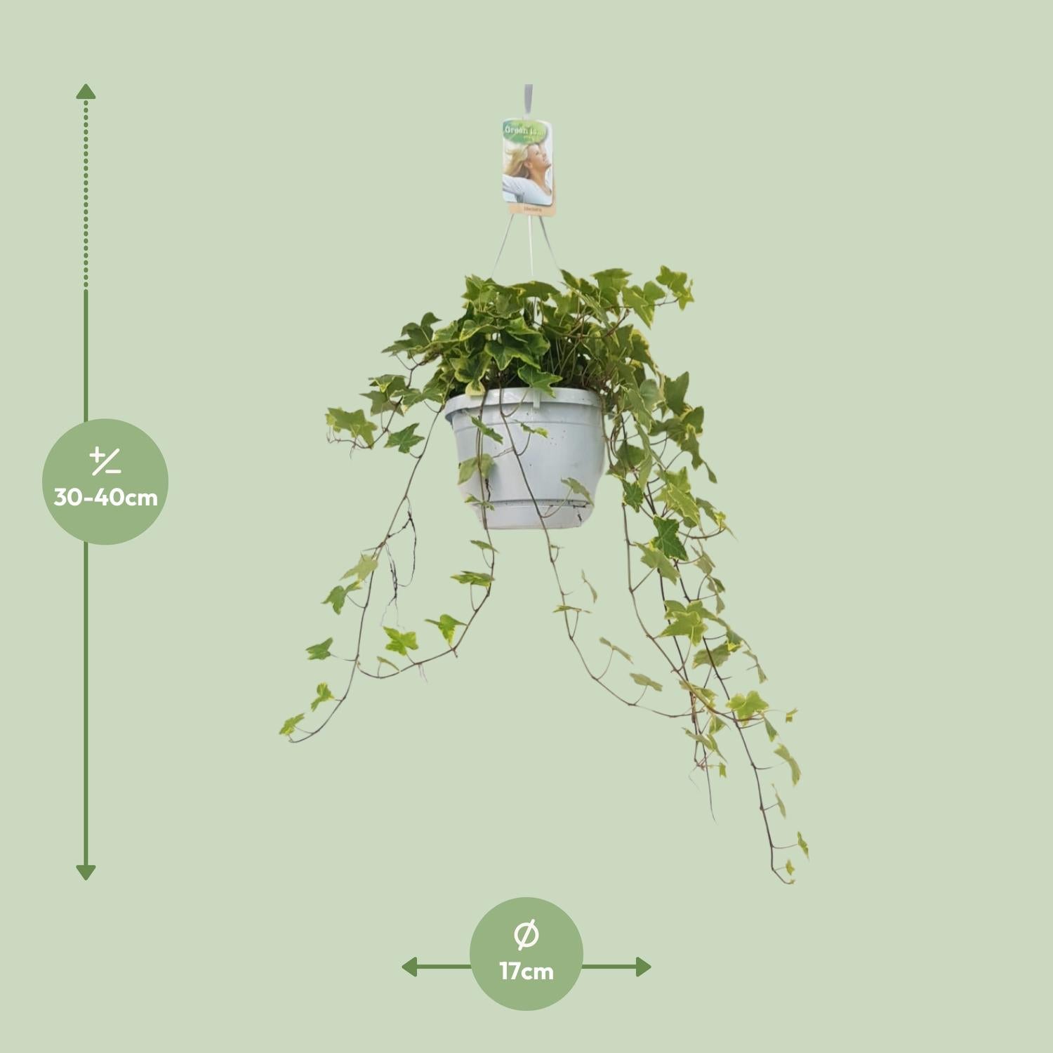 Ivy, ook bekend als Hedera, is een populaire kamerplant geliefd om zijn weelderige, hangende ranken en vermogen om de lucht te zuiveren. Afkomstig uit de bossen van Europa, Azië en Noord-Afrika, is deze prachtige plant goed geschikt voor indoor teelt. Hij gedijt goed bij gemiddeld tot helder licht, waardoor het een ideale toevoeging is aan elke goed verlichte ruimte. Hedera is oorspronkelijk afkomstig uit gematigde streken, waar het te vinden is langs bomen of op de grond groeit. Met zijn kenmerkende gelobde bladeren en klimmende karakter past het zich moeiteloos aan verschillende omgevingen aan. Ivy heeft het vermogen om verontreinigende stoffen uit de lucht op te nemen en te filteren, waardoor het een uitstekende keuze is voor mensen die de kwaliteit van de binnenlucht willen verbeteren. Met de juiste verzorging en regelmatig snoeien kan Ivy een prachtige en nuttige toevoeging zijn aan elke woning of kantoorruimte. Hedera, algemeen bekend als klimop, gedijt het beste op een locatie met gedeeltelijke schaduw en moet eenmaal per week water krijgen. Het geeft de voorkeur aan goed doorlatende grond, zoals een mengsel van potgrond en perliet. Wat betreft bemesting, wordt aanbevolen om de plant eens per maand te voeden tijdens de lente- en zomerseizoenen. Gebruik een gebalanceerde vloeibare meststof verdund tot halve sterkte. Onthoud dat klimop een onderhoudsarme plant is die met de juiste zorg en aandacht een vleugje groen toevoegt aan elke ruimte. Ivy wordt vaak binnenshuis gebruikt als decoratieve plant vanwege zijn hangende ranken en weelderige groene bladeren. Het wordt vaak gebruikt om een vleugje natuurlijke schoonheid en elegantie toe te voegen aan interieurruimtes, zoals huizen, kantoren en restaurants. - De klimopplant wordt geleverd in een handig formaat van 17 cm, perfect voor elke binnenruimte. - Met een huidige hoogte van ongeveer 35 cm voegt deze klimopplant een vleugje elegantie toe aan elke kamer. - Deze klimopplant gedijt goed op een plek met gedeeltelijke schaduw, waardoor het een ideale keuze is voor gebieden met minder direct zonlicht. - Het verzorgen van klimop is een fluitje van een cent, omdat het minimale onderhoud vereist en bekend staat om zijn veerkracht. - Met zijn weelderige, hangende bladeren voegt de klimopplant een vleugje natuurlijke schoonheid toe aan elk huisdecor.