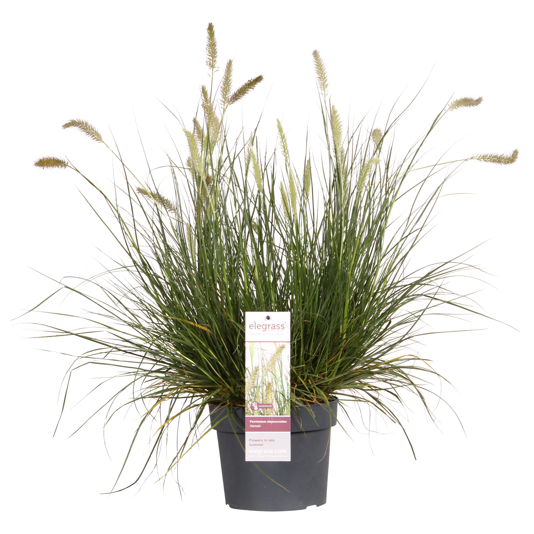 Pennisetum alopecuroides "Hameln", in het nederlands lampenpoetsersgras genaamd, is een bijzonder populaire bladverliezende grassoort met een ronde, compacte, polvormende habitus. De bladeren zijn smal lineair, middengroen tot donkergroen, boogvormig en overhangend, in de herfst krijgen ze een goudgele kleur. Pennisetum alopecuroides "Hameln" bloeit van juli tot september met eerst groenachtige, roomwitte bloemaren die later in de herfst grijsbruin kleuren. Dit lampenpoetsersgras houdt van een standplaats in volle zon of halfschaduw en een goed doorlaatbare, gemiddeld vruchtbare niet té zware grond. Deze pennisetum is redelijk tot goed winterhard en droogtetolerant, verdraagt goed zeewind en luchtvervuiling. Het is een mooi siergras voor de gemengde border, de gravel tuin, prairietuin of ook bruikbaar als kuipplant en geschikt als snijbloem.