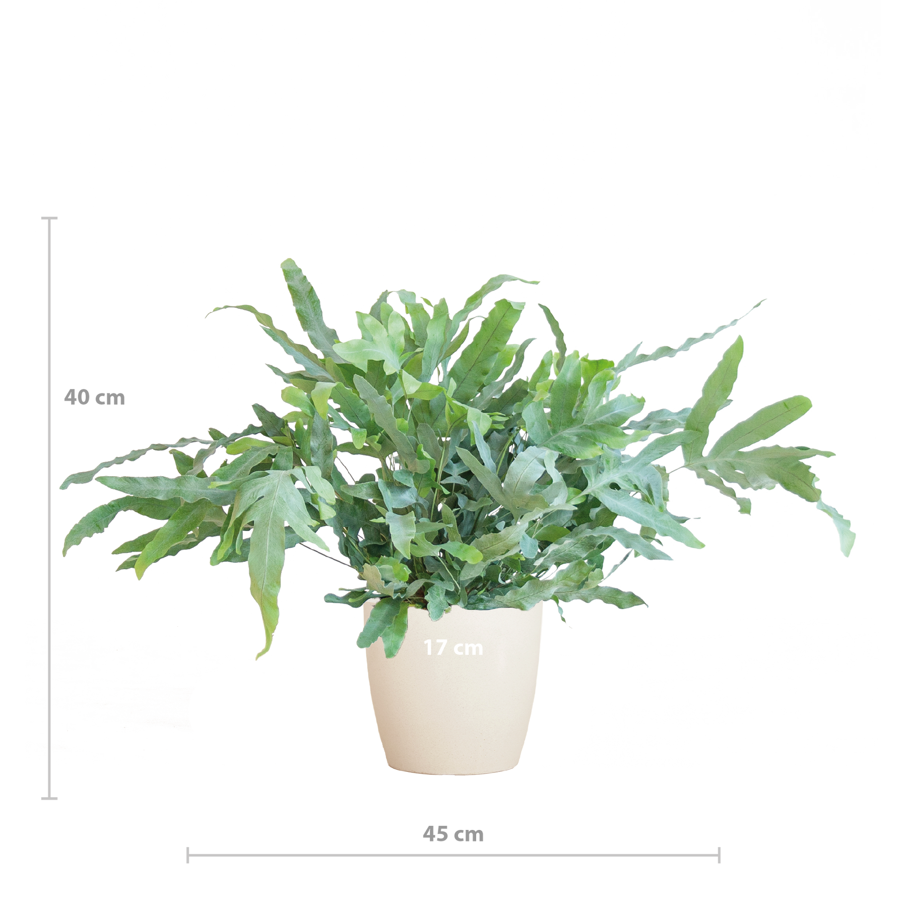 De Phlebodium, ook wel bekend als Blauwvaren of Zinkvaren, is een opvallende kamerplant. Zijn unieke grijsblauwe bladeren geven hem een onderscheidend uiterlijk, wat deze kamerplant erg populair maakt voor binnenhuisdecoratie.