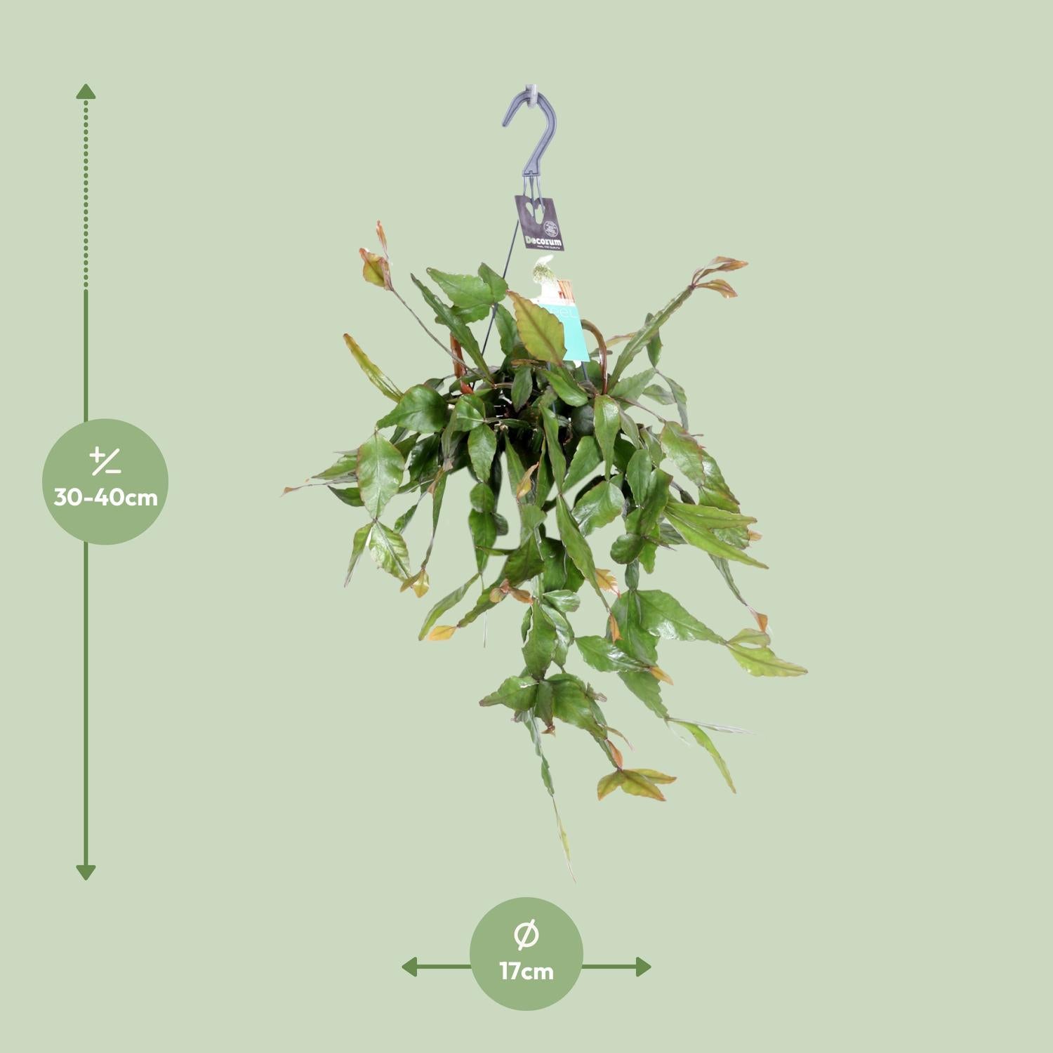 - Deze Rhipsalis wordt geleverd in een potmaat van 17 cm, perfect voor thuisbezorging.- Met een huidige hoogte van ongeveer 35 cm, voegt deze Rhipsalis een vleugje elegantie toe aan elke ruimte.- Plaats deze prachtige plant op een plek met halfschaduw voor optimale groei en geluk.- Met zijn lage onderhoudsvereisten is het verzorgen van Rhipsalis een fluitje van een cent.- De unieke uitstraling van Rhipsalis, met zijn hangende stelen en delicate bladeren, zal zeker indruk maken.